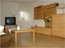 Die Wohnung hat ein Schlafzimmer mit Doppelbett (verstellbarem Lattenrost), ein großes Wohnzimmer mit TV